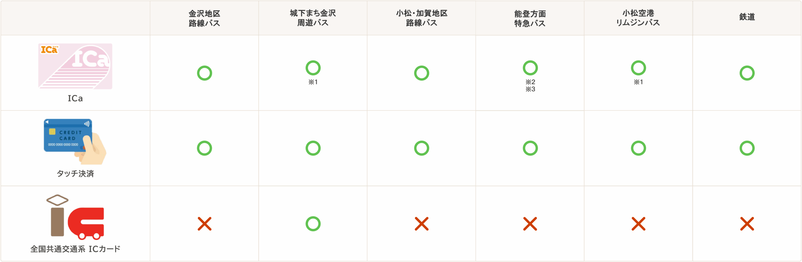 3 能登方面特急バスでは定期券をタッチしてご利用いただけません。乗降時に券面を乗務員までご提示ください。
