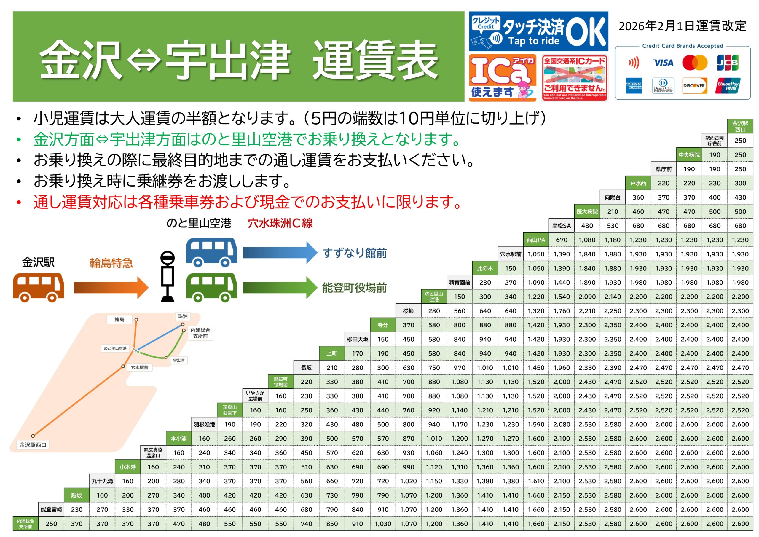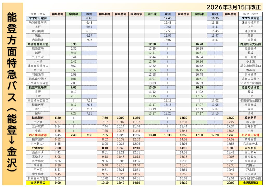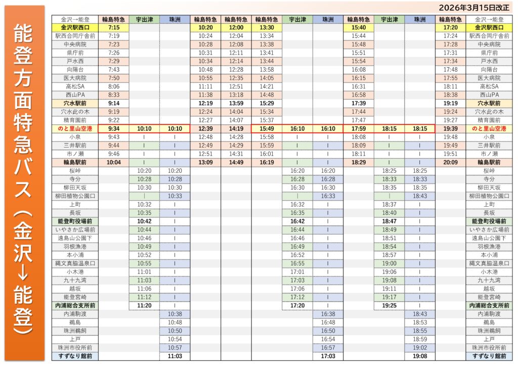 能登地区主要停留所のりば案内