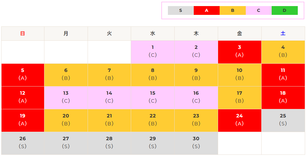 | 区分 | S | A | B | C | D |