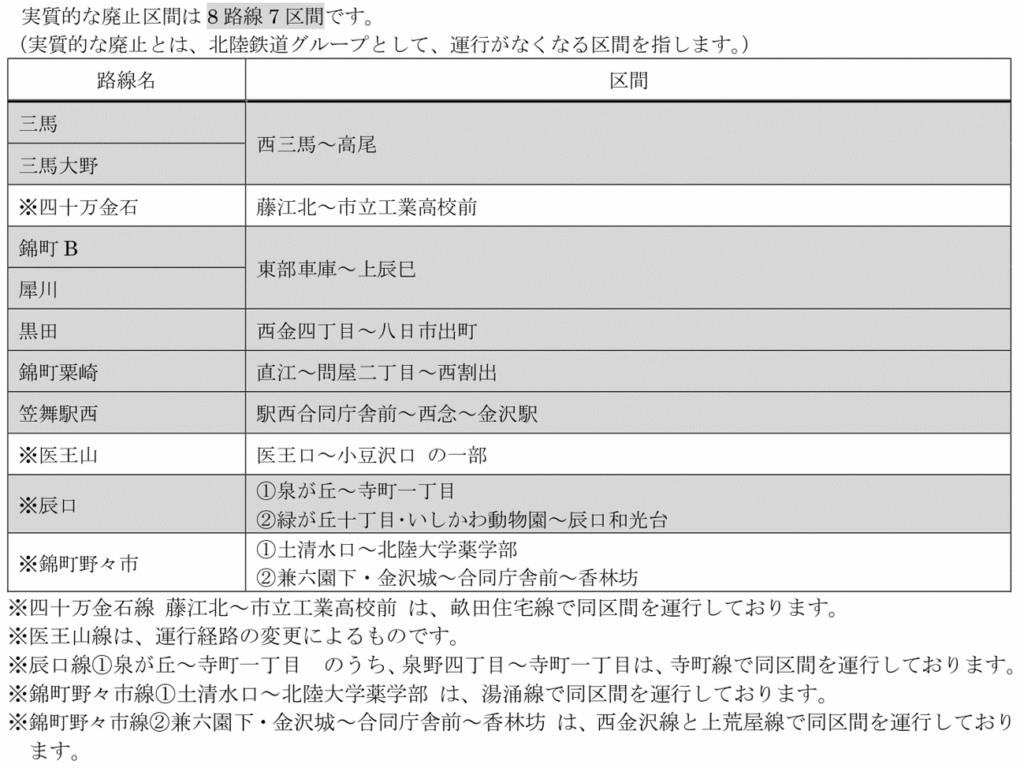 金沢地区の平日において、ご利用状況や運転士不足の状況を踏まえ、一部区間の廃止を実施します。