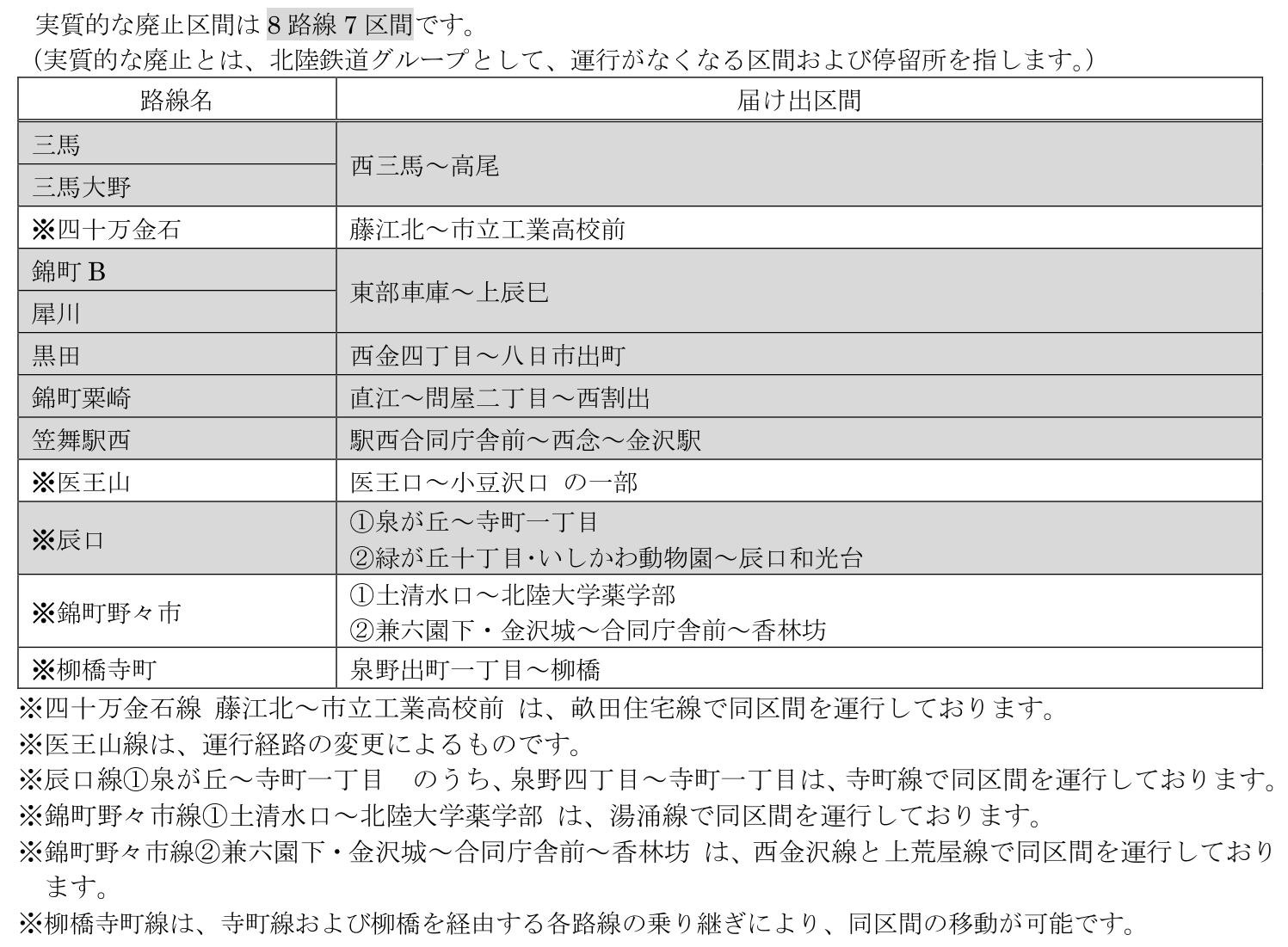 金沢地区の平日において、ご利用状況や運転士不足の状況を踏まえ、一部区間の廃止を実施します。