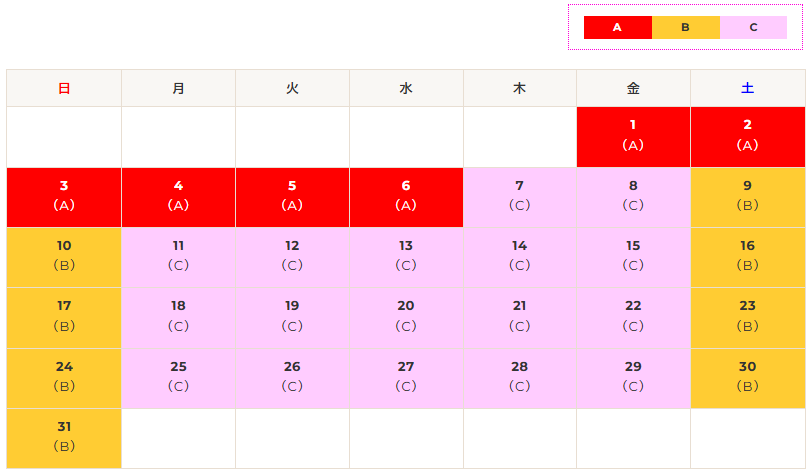 高速バス新潟線のカレンダー運賃について(2026/5/1~2026/5/31)