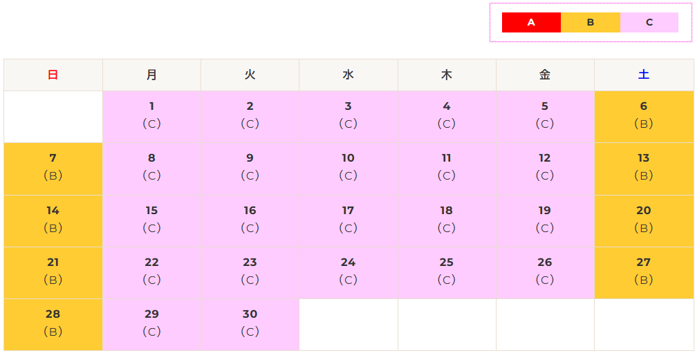 高速バス新潟線のカレンダー運賃について(2026/6/1~2026/6/30)