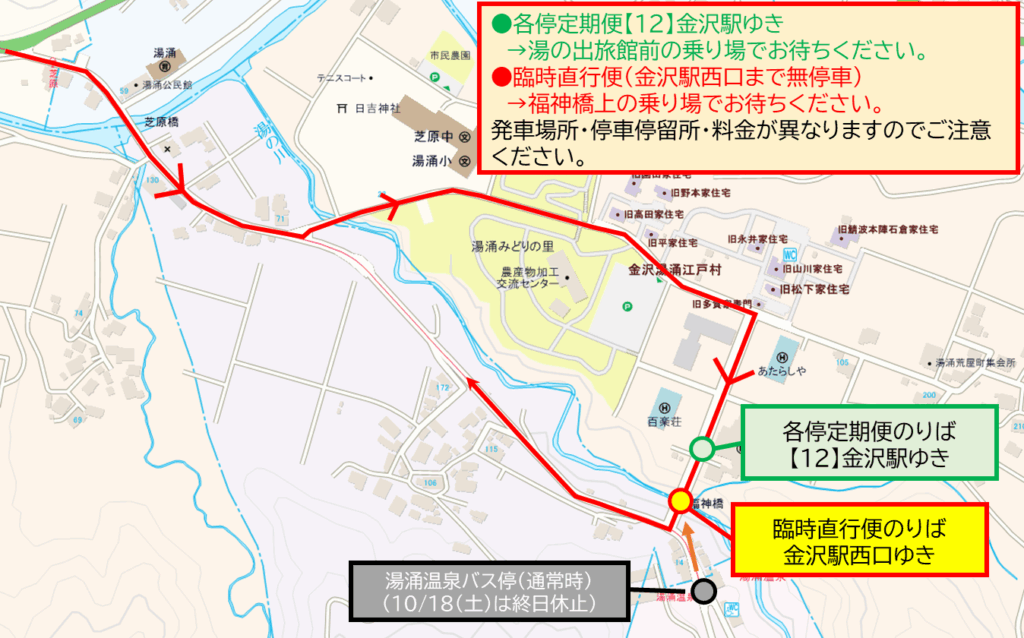 2025年10月18日(土)は湯涌温泉のバス乗り場を下図の通りとさせていただきます。