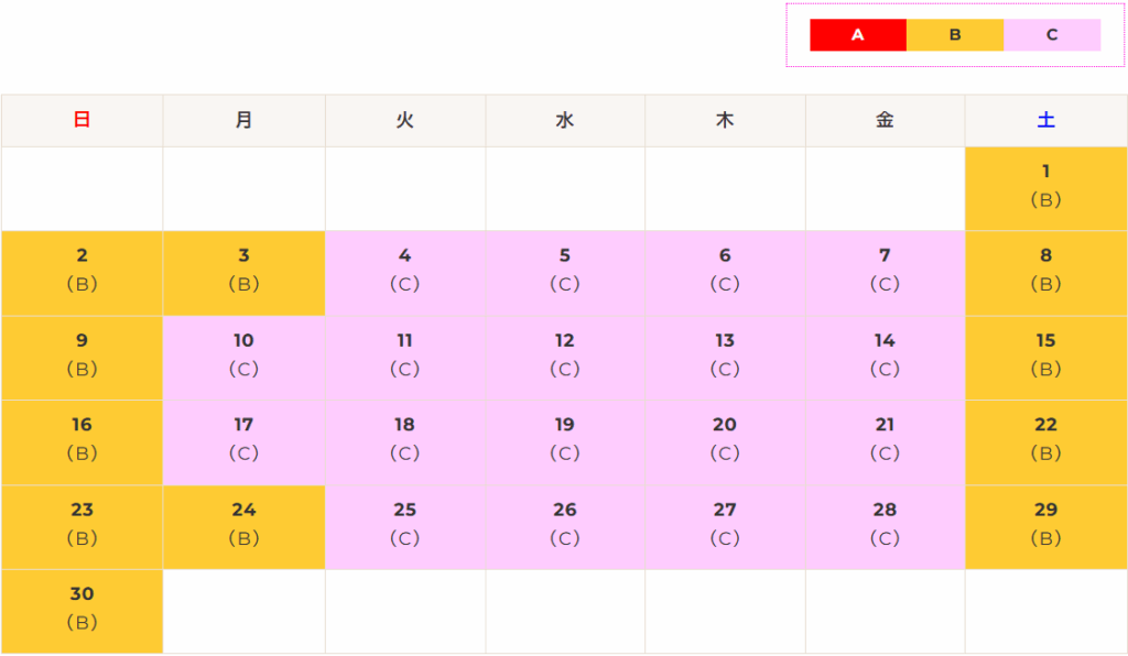 高速バス新潟線のカレンダー運賃について(2025/11/1~2025/11/30)