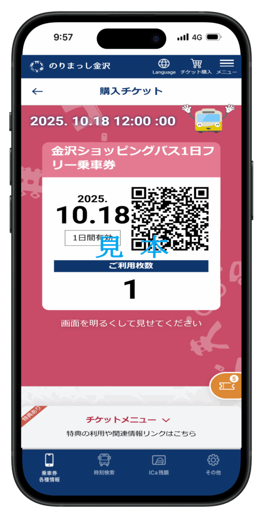 金沢ショッピングバス1日フリー乗車券の販売について(10/9~19)
