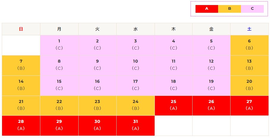 高速バス新潟線のカレンダー運賃について(2025/12/1~2025/12/31)