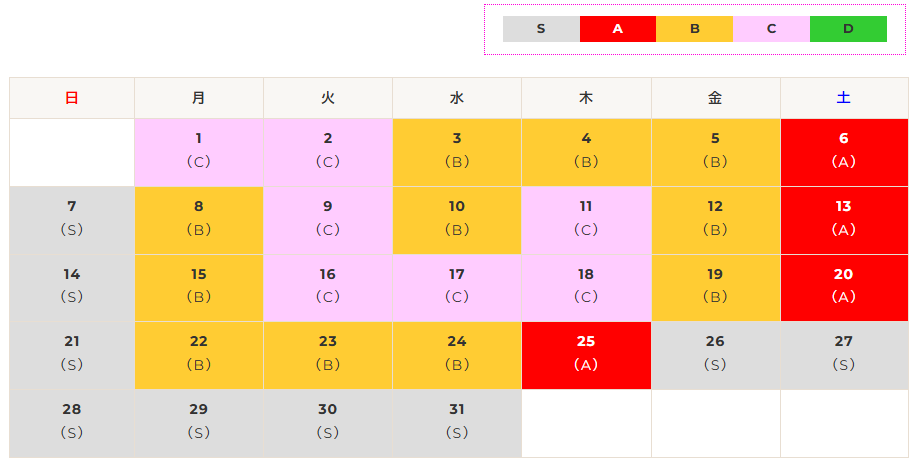 | 区分 | S | A | B | C | D |