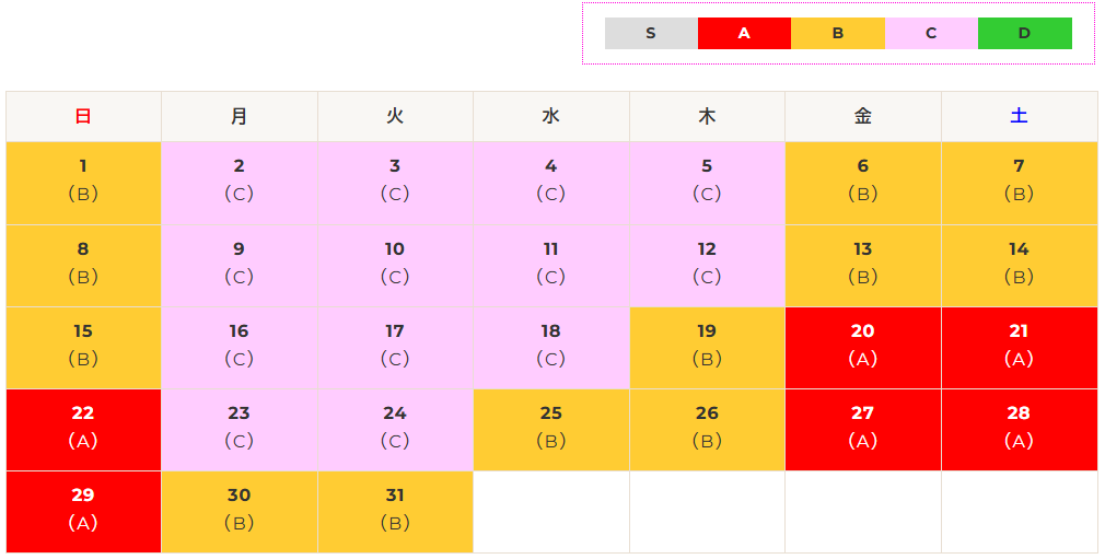 | 区分 | S | A | B | C | D |