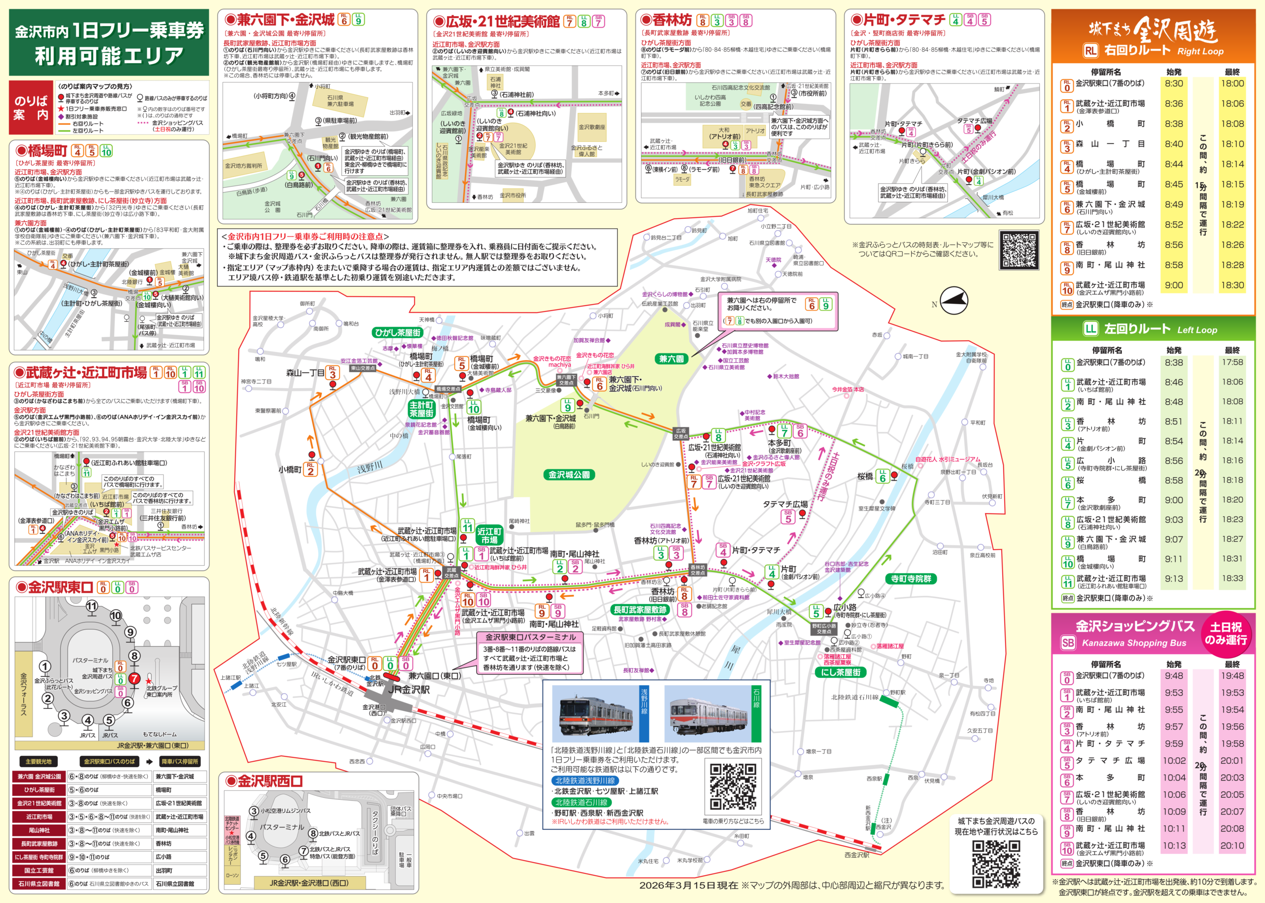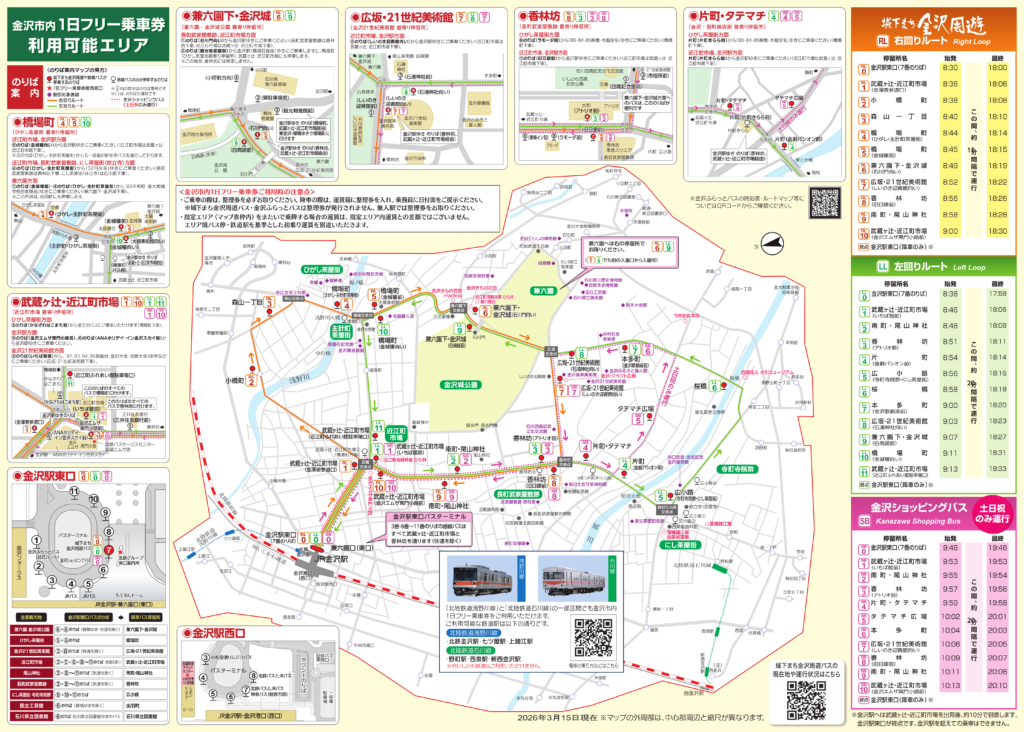 - 金沢市内1日フリー乗車券の有効日において終日ご利用いただけます。